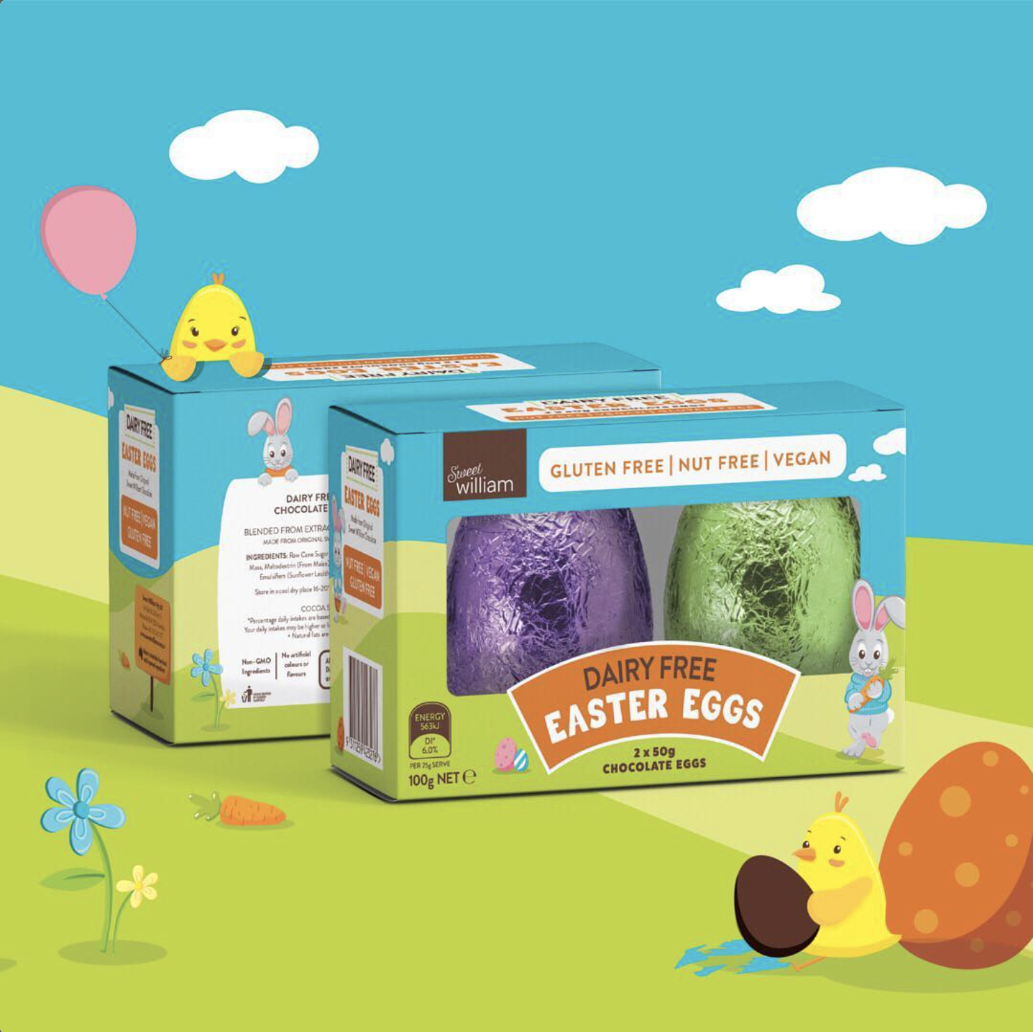 Sweet William is an Australian dairy free, vegan and nut free chocolate brand. Created especially for those with food allergies or following a vegan diet. Coming into Easter, they notived that those with food allergies were restricted to ‘boring’ packaging for their easter eggs. My brief was to create ‘fun’ packaging designs, one suited to adults and two suited to children. when the products were announced on social media there was an averwhelming amount of positive feedback by those who were excited to finally have fun packaging!
