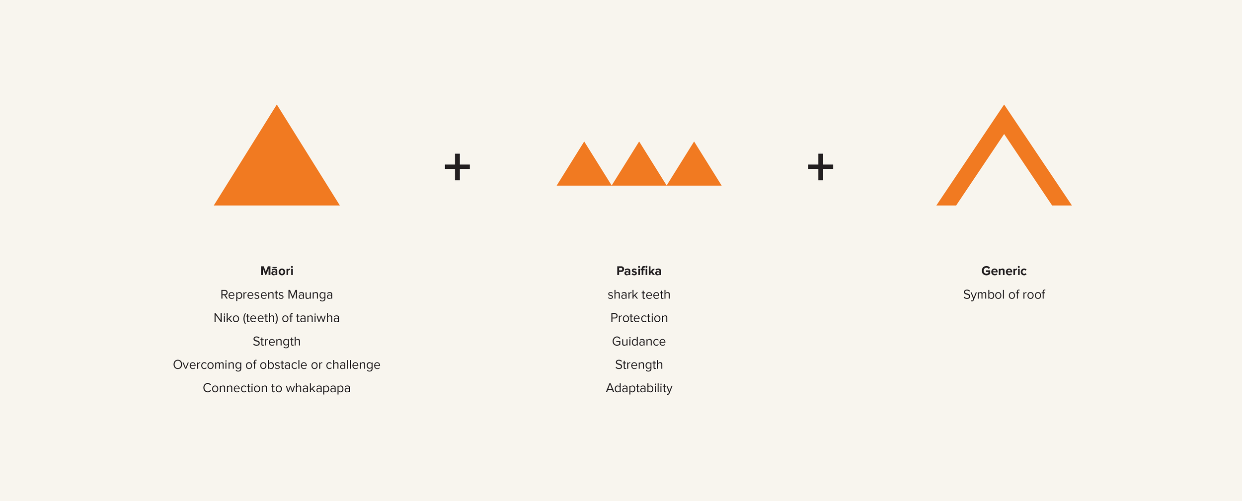 Orange triangle: representing a connection to the soil, with the shade symbolic of the colour of tapa cloth.